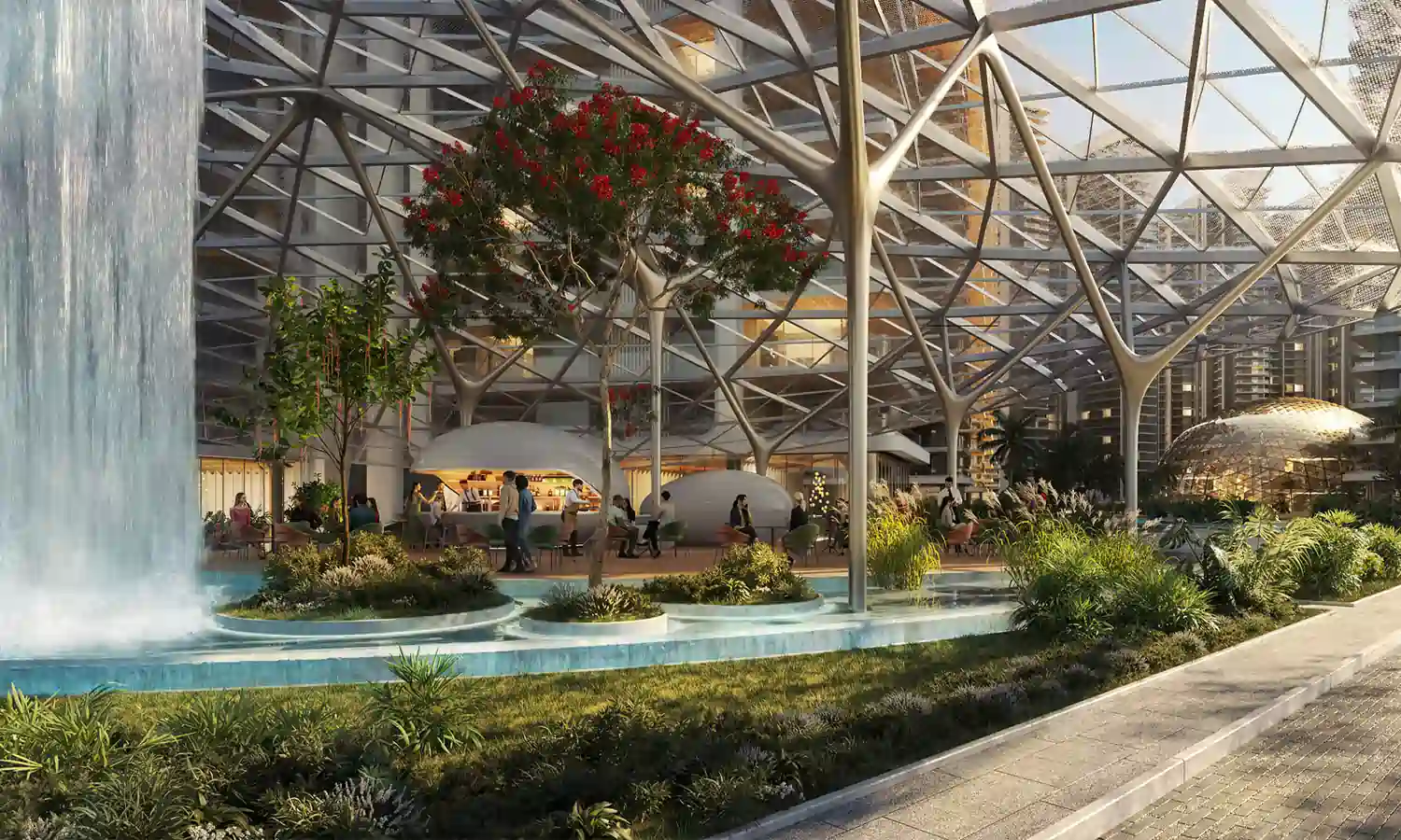• Air-conditioned triple-height grand lobby